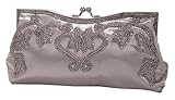- Small Satin Clutch with Floral Beaded and Rhinestone Evening Bag - (Reyna)