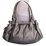 - Silver-tone hardware and studs. Double braided carrying handles and braided accents.