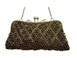 1.Fully Handmade Beaded Evening handbag/purse wedding bag 2. fabric+ beads 3. size:7.5"x1.5"x4.1" 4. 48" removebale metal chain as well as a short chain 5.color: brown