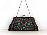 WF0910-03 multi-black Fully Beaded Evening Handbag Bag Wedding Purse with turquoise stone