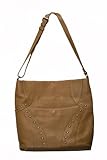 Womens Tan Leather Beaded Accented Handbag in Tan