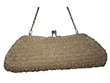 1.fully beaded evening handbag mental handle purse bag 2. size:9.8"x2.8"x4" 3. champagne with silver 4. 48" long metal handle