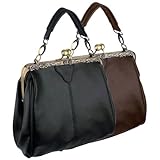 DANYA Vintage Clasp Frame Closure Top Handle Purse Satchel Handbag w/Detachable Shoulder Chain