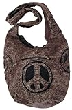 Peace Sign Stonewashed Sling Purse Handbag in Brown