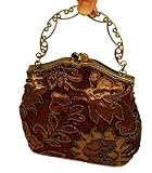 A SaddleBrown Base Evening Handbag W/chain, Cover By Beaded Golden Yellow Flower and Leaves, a Lovely Evening Purse --- #1