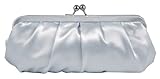 Constructed with smooth satin panels in a gathered design,the elegant clutch features a kiss closure and a hidden chain shoulder strap.