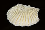 Ladies Beaded Shell Style Handbag for Formal Wear, Cream/Gold