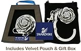 Silver Rose with Clear Swarovski Crystal Key Chain, Folding Purse Hook with Black Velvet Pouch in Gift Box by Chatt