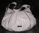 - Ruched details and logo plate lend chic flair. Silver-tone piping and hardware add sophisticated appea